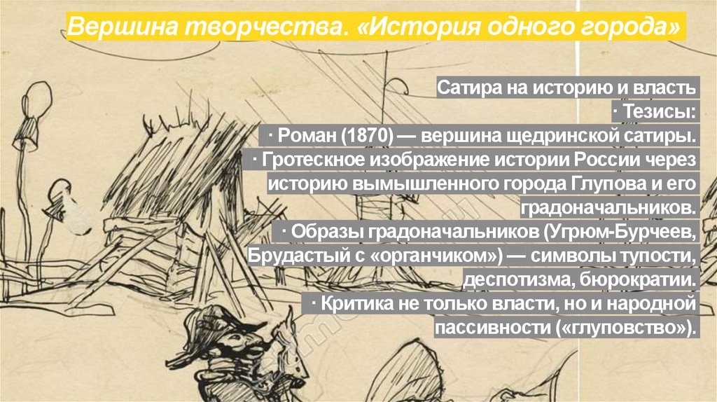 Вершина творчества. «История одного города»Сатира на историю и власть
