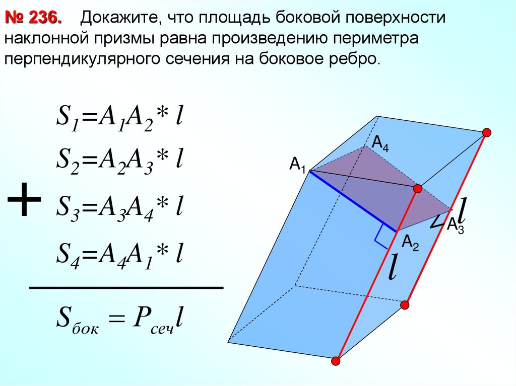 № 236. Докажите, что площадь боковой поверхностинаклонной призмы равна произведению периметра