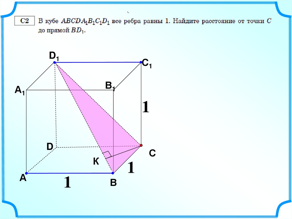 вершиной А и точкой пересечения диагоналей грани DD1С1С.