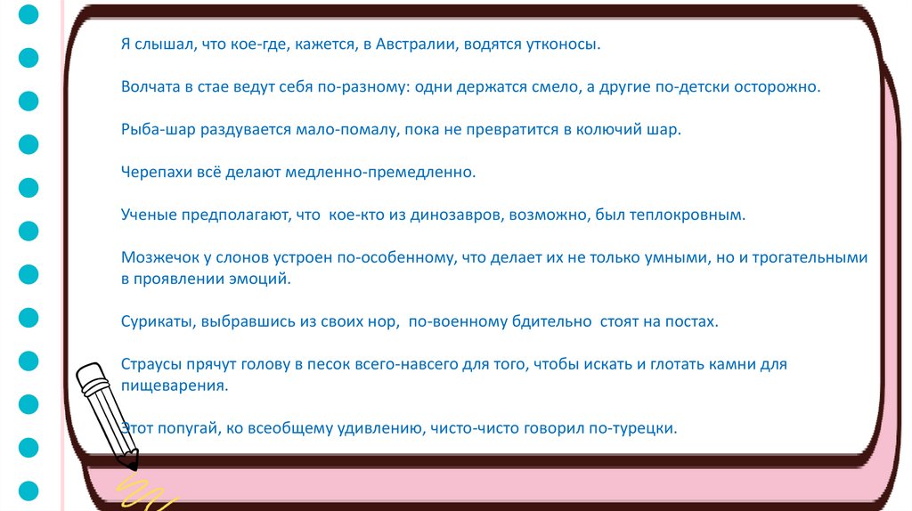Мир животных и птиц. Правописание наречий.