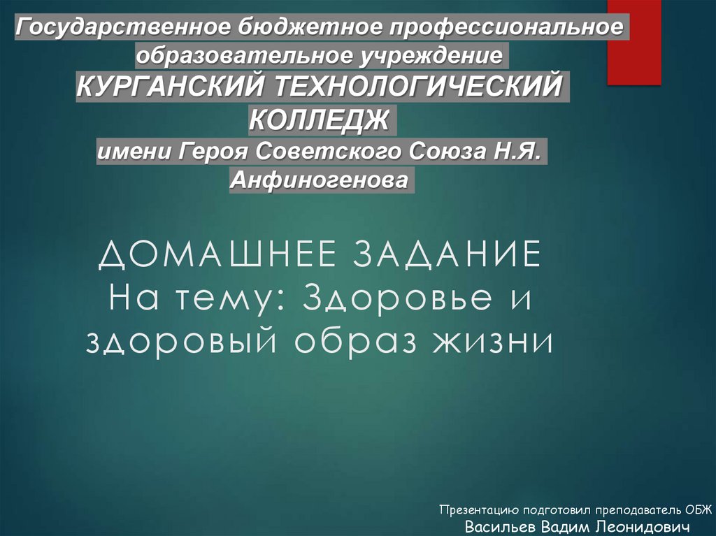 1. ДОМАШНЕЕ ЗАДАНИЕ На тему: Здоровье и здоровый образ жизни
