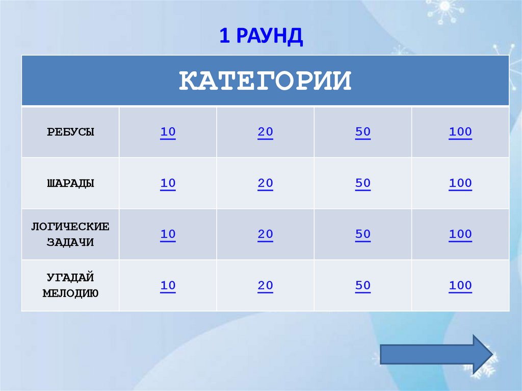 1 РАУНДКАТЕГОРИИ