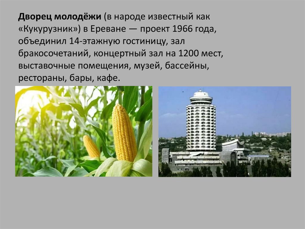 Дворец молодёжи (в народе известный как«Кукурузник») в Ереване — проект 1966 года,