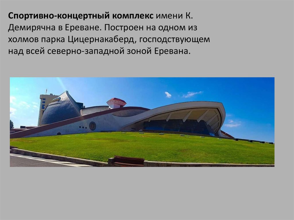 Спортивно-концертный комплекс имени К.Демирячна в Ереване. Построен на одном из