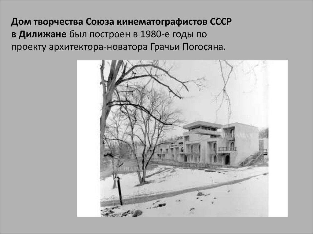 Дом творчества Союза кинематографистов СССРв Дилижане был построен в 1980-е годы по