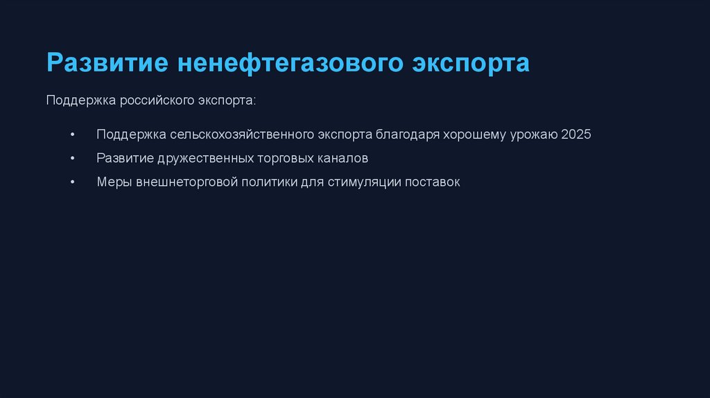 Развитие ненефтегазового экспортаПоддержка российского экспорта: