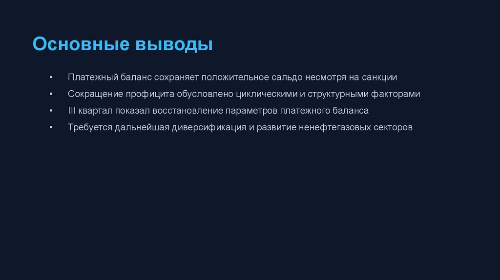 Основные выводыПлатежный баланс сохраняет положительное сальдо несмотря на санкции