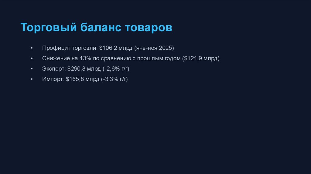 Торговый баланс товаровПрофицит торговли: $106,2 млрд (янв-ноя 2025)