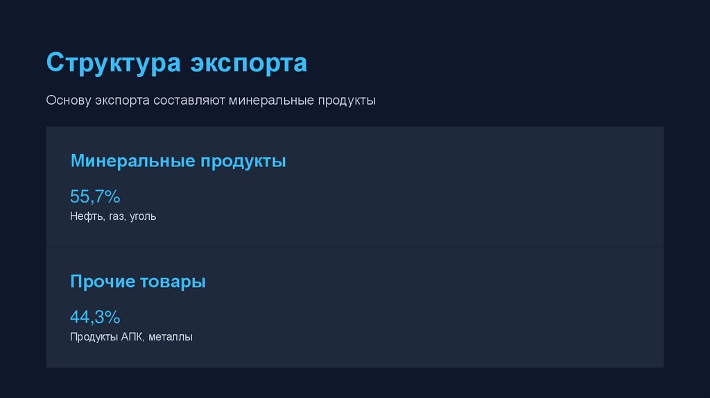 Структура экспортаОснову экспорта составляют минеральные продукты