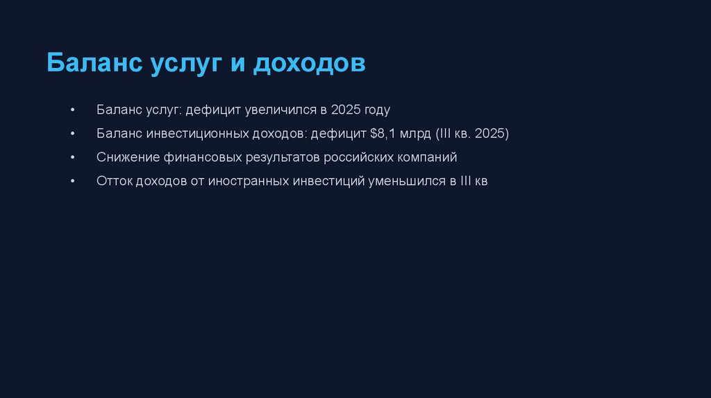 Баланс услуг и доходовБаланс услуг: дефицит увеличился в 2025 году
