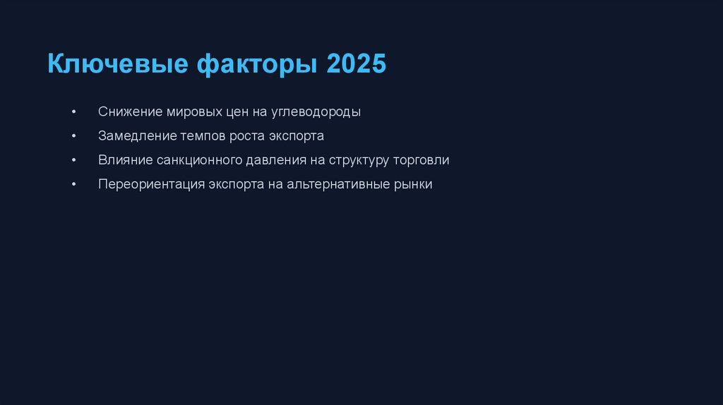 Ключевые факторы 2025Снижение мировых цен на углеводороды