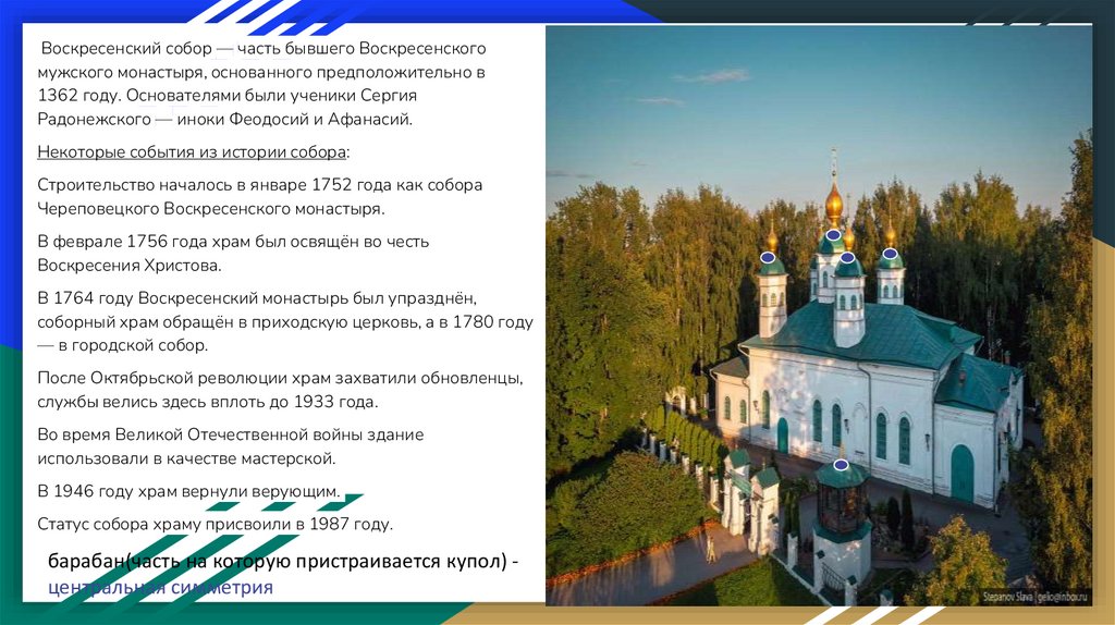 барабан(часть на которую пристраивается купол) центральная симметрия