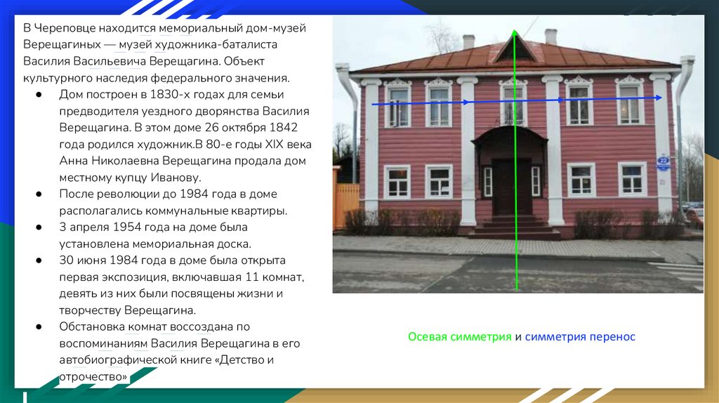 В Череповце находится мемориальный дом-музейВерещагиных — музей художника-баталиста