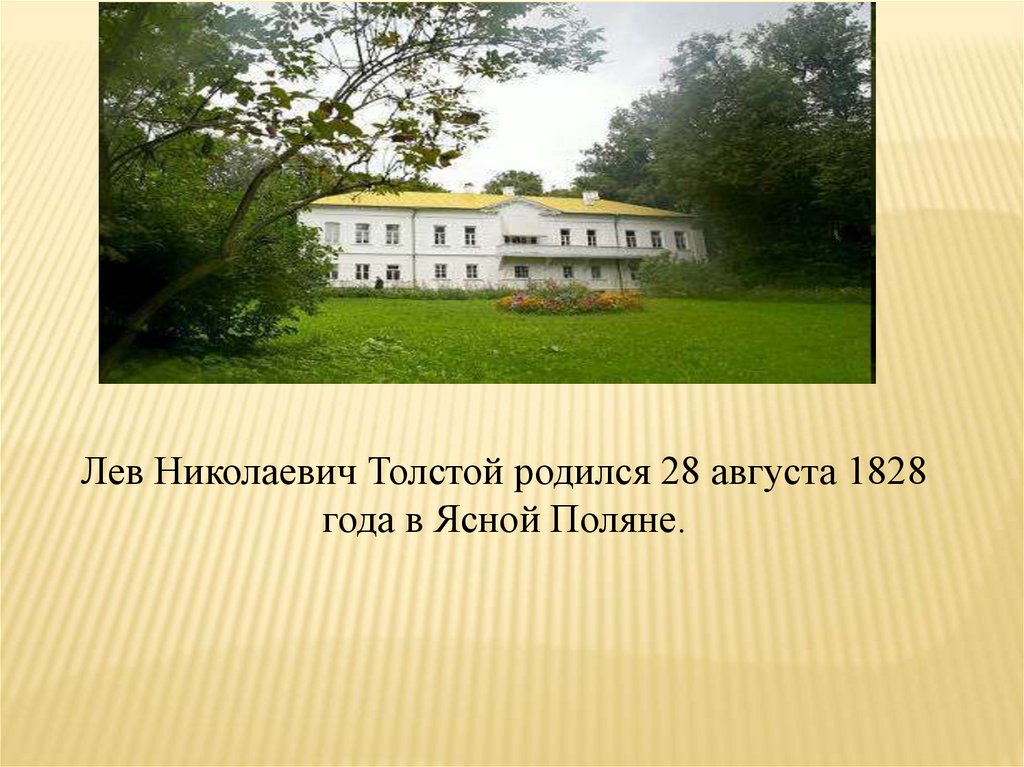 Лев Николаевич Толстой родился 28 августа 1828года в Ясной Поляне.