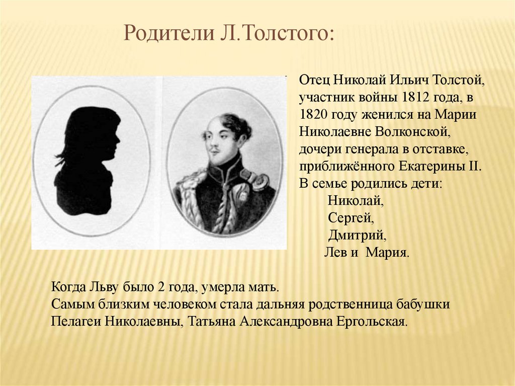 Родители Л.Толстого:Отец Николай Ильич Толстой,