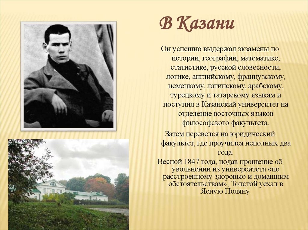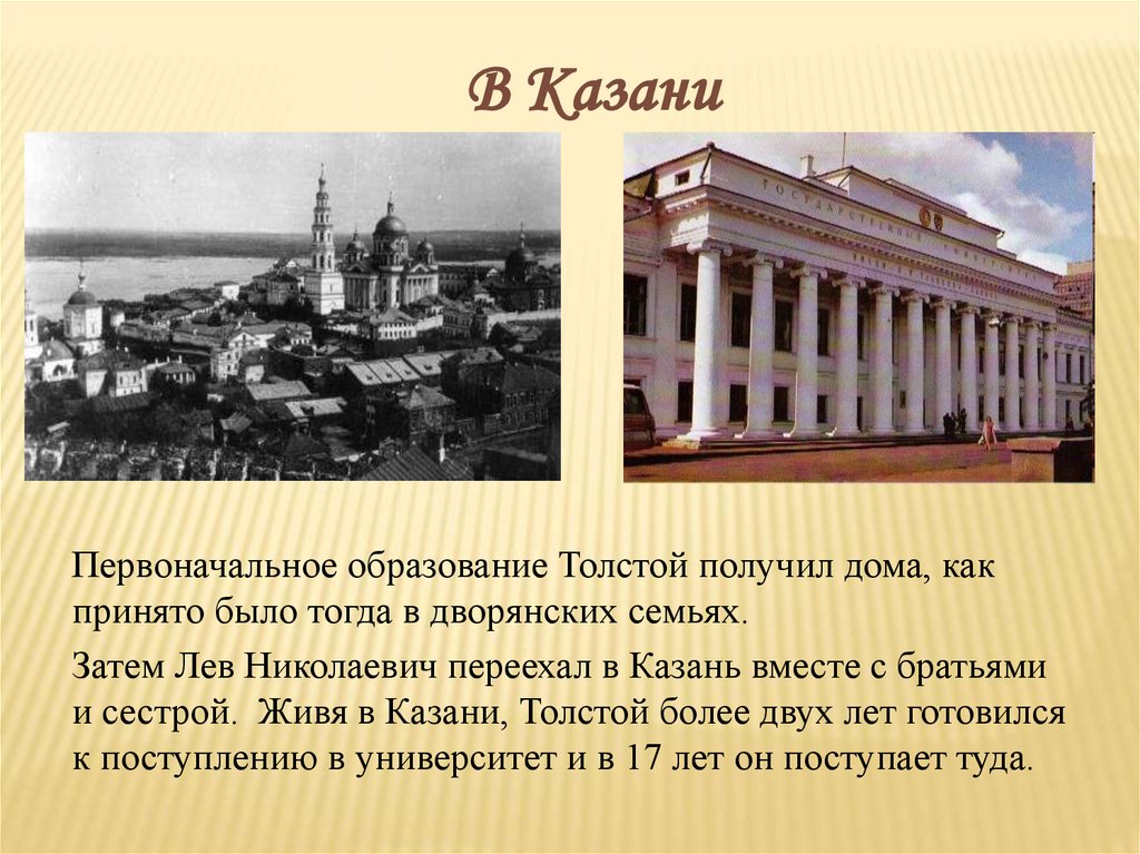и сестрой. Живя в Казани, Толстой более двух лет готовился