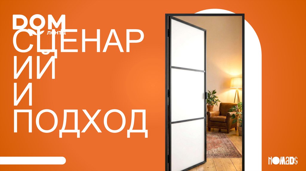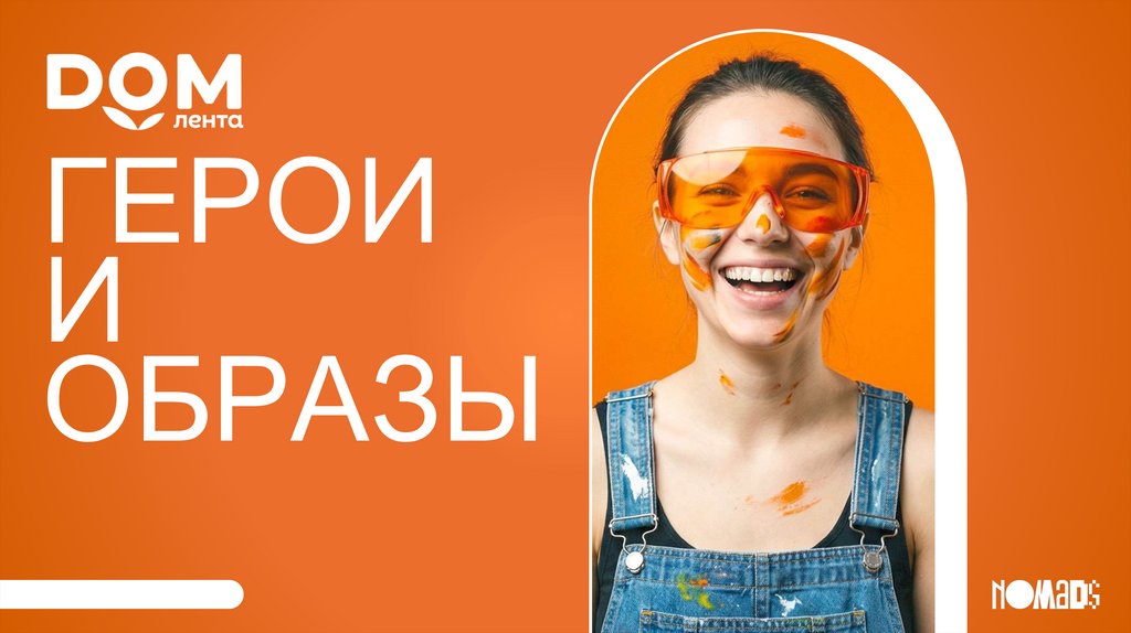DOM.ЛЕНТА (ВЕРСИЯ НА АПРЕЛЬ)Логотип DOM.Лента на оранжевом фоне. На отъезде камеры мы видим, что это логотип на