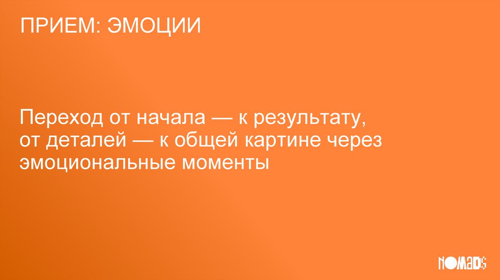 ПРИЕМ: ЭМОЦИИПереход от начала — к результату,