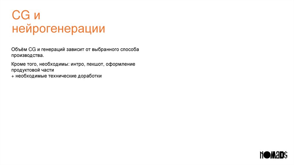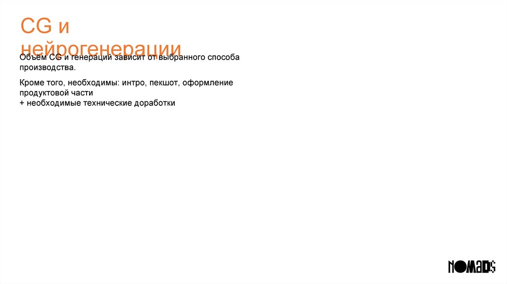 • Нейрогенерации с доработкой на графике с упором на качество и реалистичность.