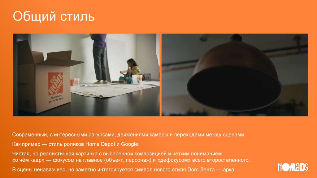 Как пример — стиль роликов Home Depot и Google.