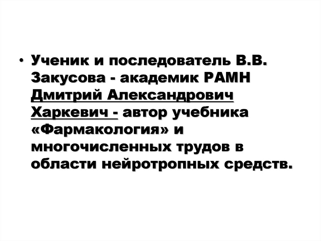 • Ученик и последователь В.В.Закусова - академик РАМН