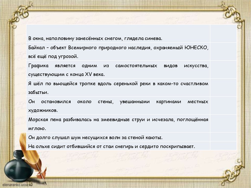 7) Воздух чист и свеж, как поцелуй ребёнка. (Лермонтов).