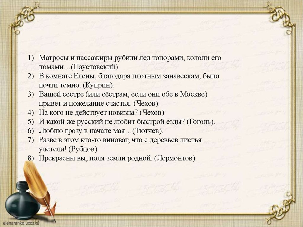 5) И какой же русский не любит быстрой езды? (Гоголь).