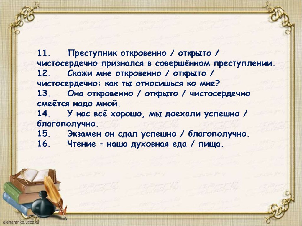 11.Преступник откровенно / открыто /