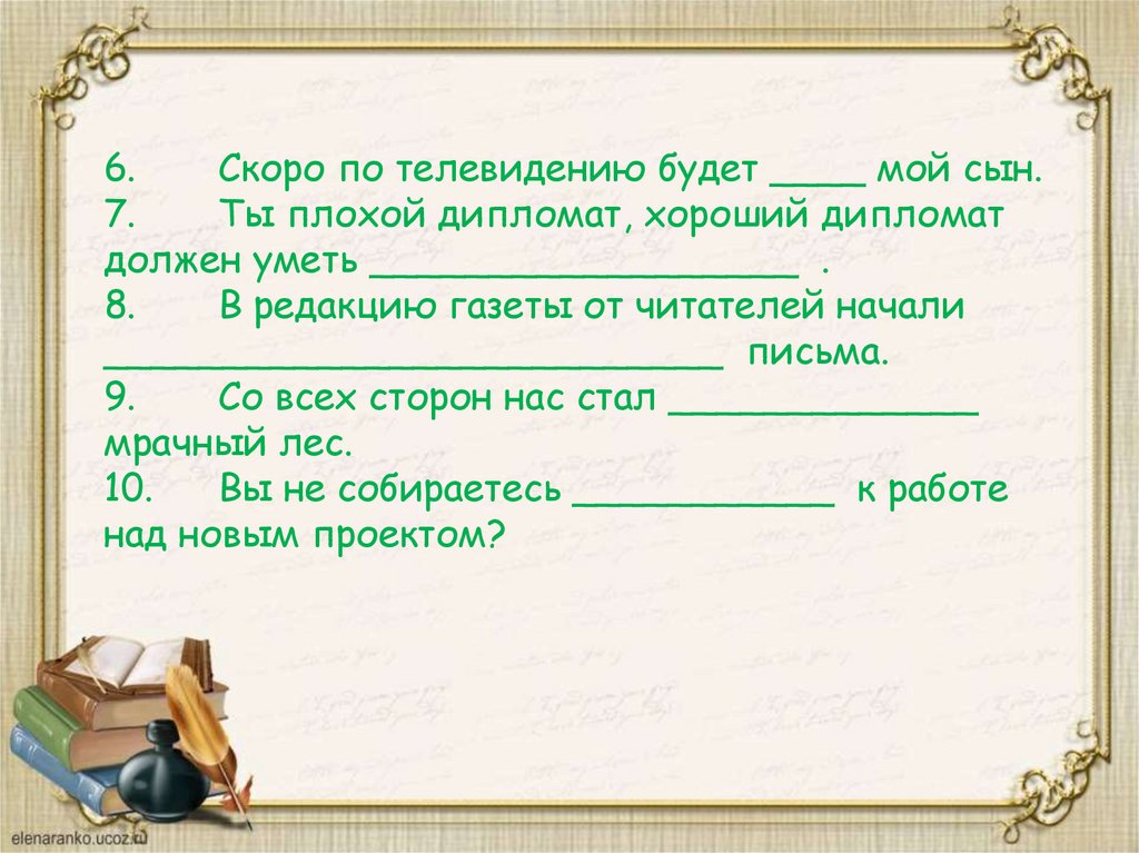 6.Скоро по телевидению будет ____ мой сын.