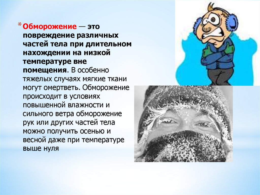 * Обморожение — этоповреждение различных