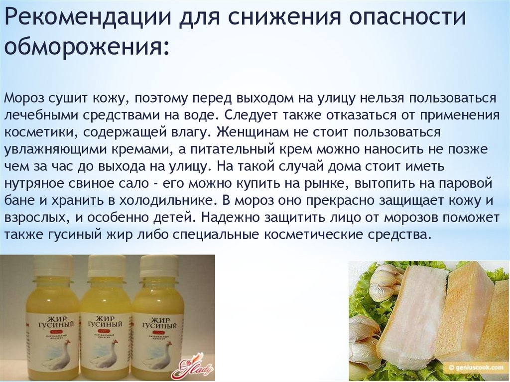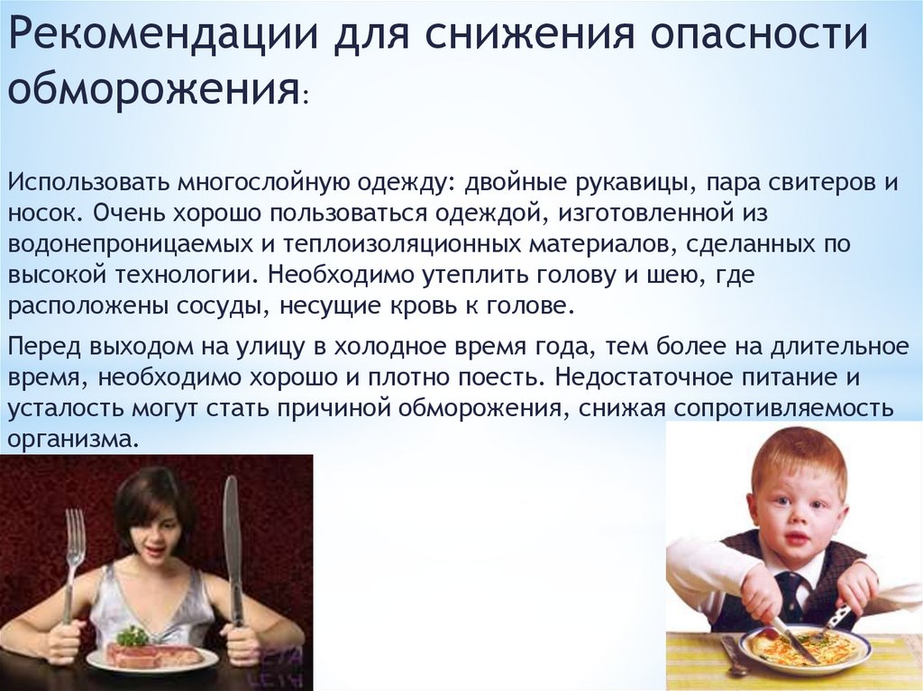 Рекомендации для сниженияопасности обморожения: