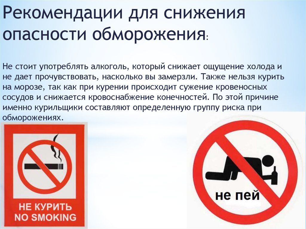 Рекомендации для снижения опасностиобморожения: