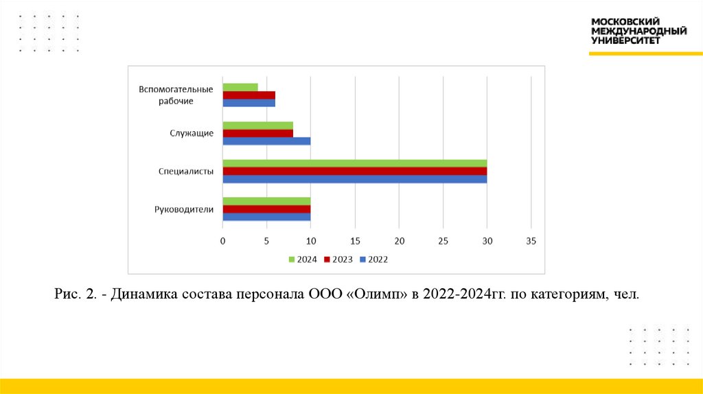 Рис. 2. - Динамика состава персонала ООО «Олимп» в 2022-2024гг. по категориям, чел.5.