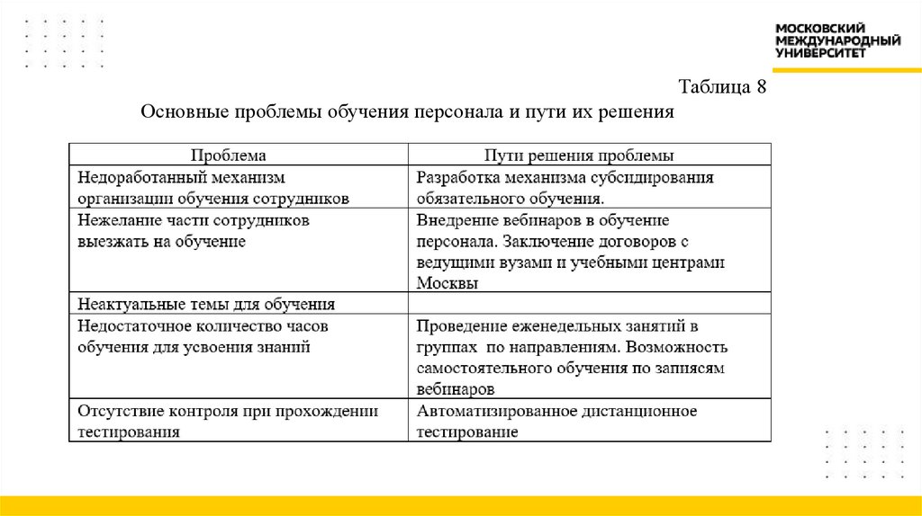Таблица 8Основные проблемы обучения персонала и пути их решения