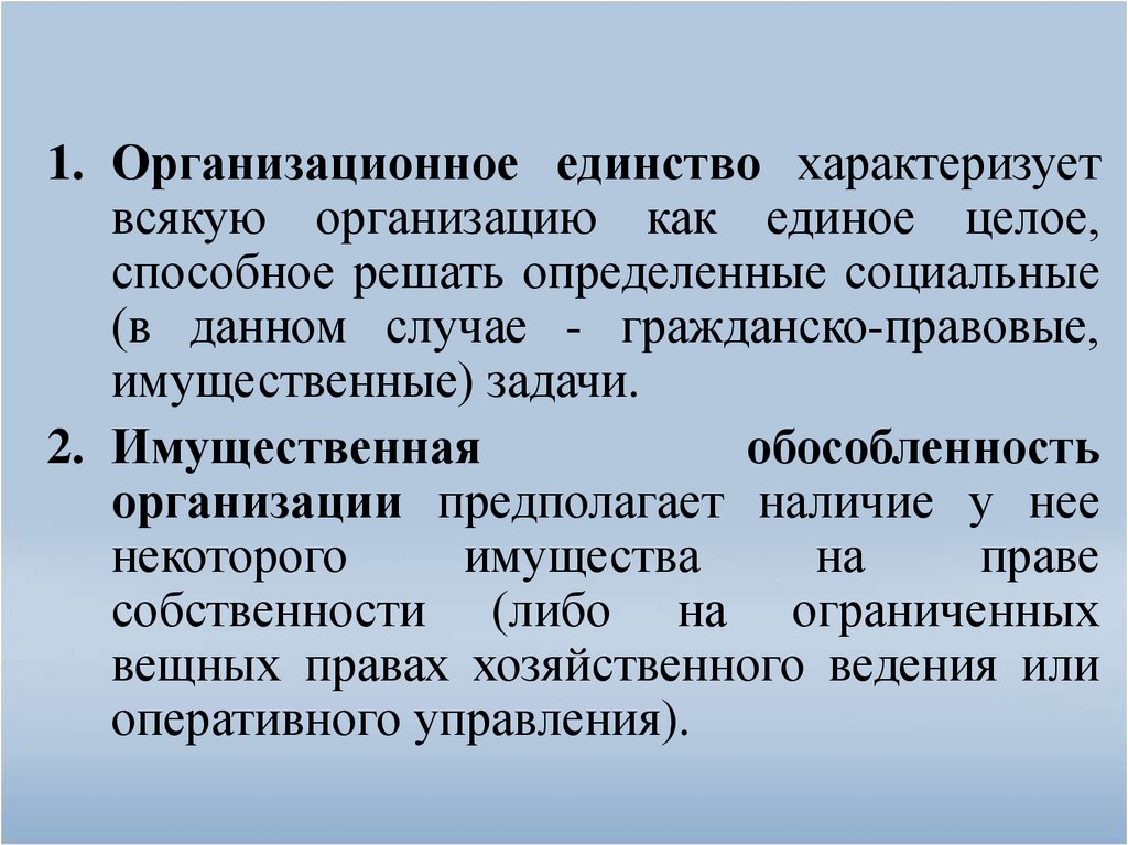 1) организационное единство;2) имущественная обособленность;