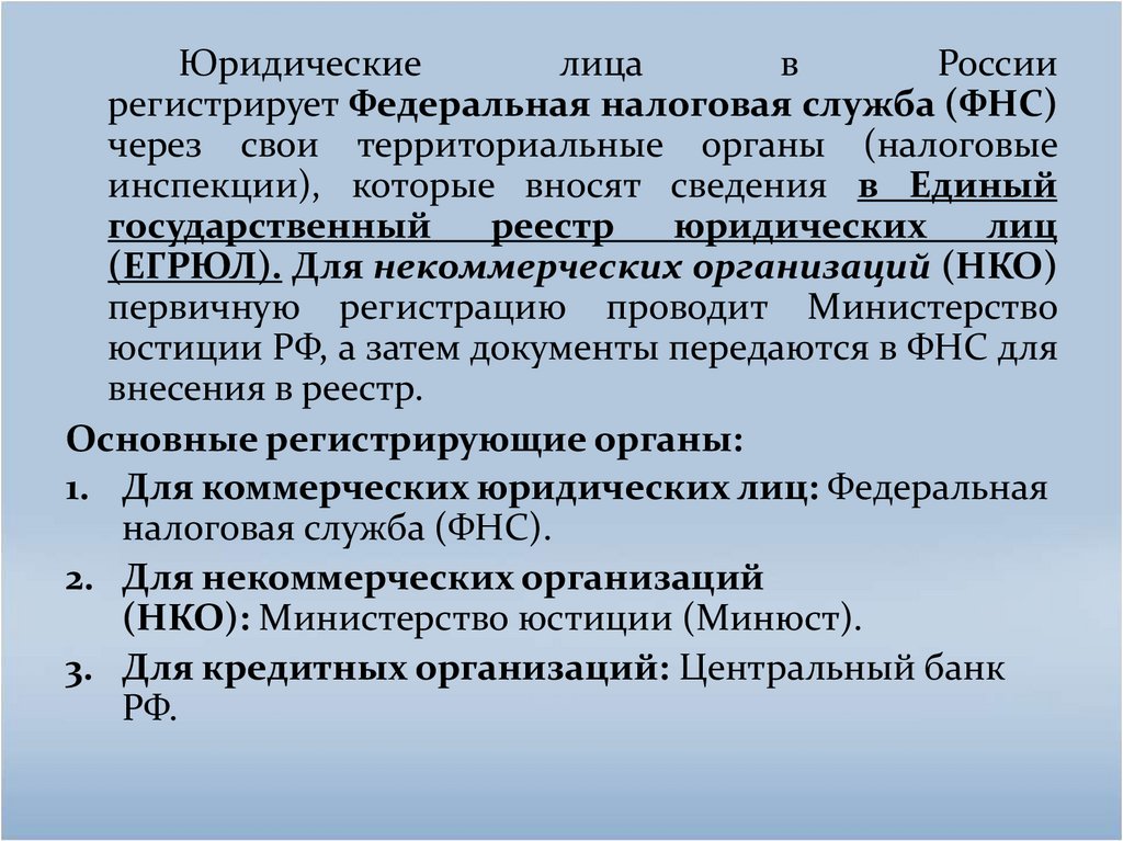 Основные регистрирующие органы: