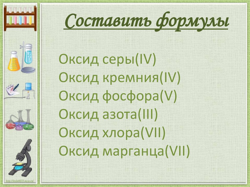 Составить формулыОксид серы(IV)