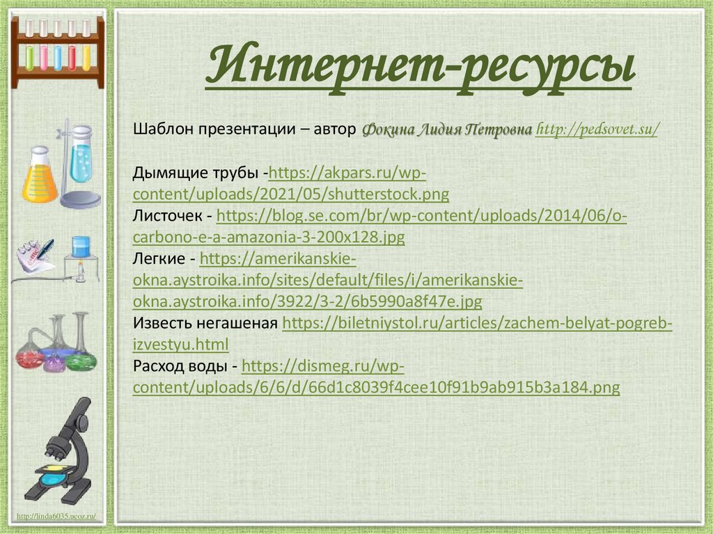 Интернет-ресурсыШаблон презентации – автор Фокина Лидия Петровна http://pedsovet.su/