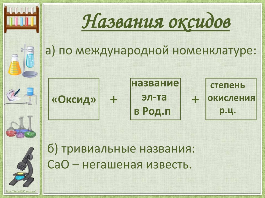 Названия оксидова) по международной номенклатуре: