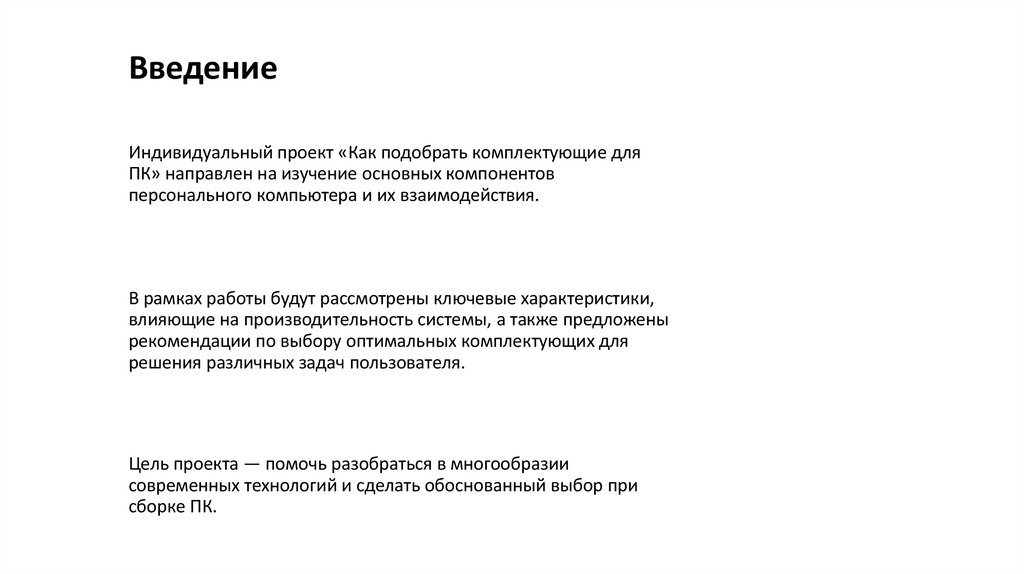 ВведениеИндивидуальный проект «Как подобрать комплектующие для
