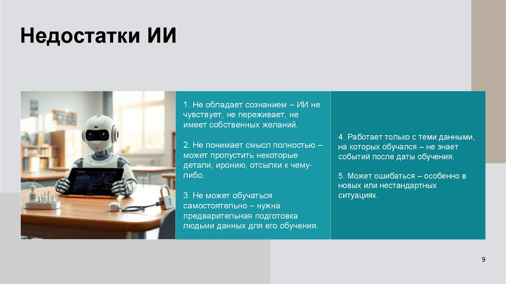 Недостатки ИИ1. Не обладает сознанием – ИИ не
