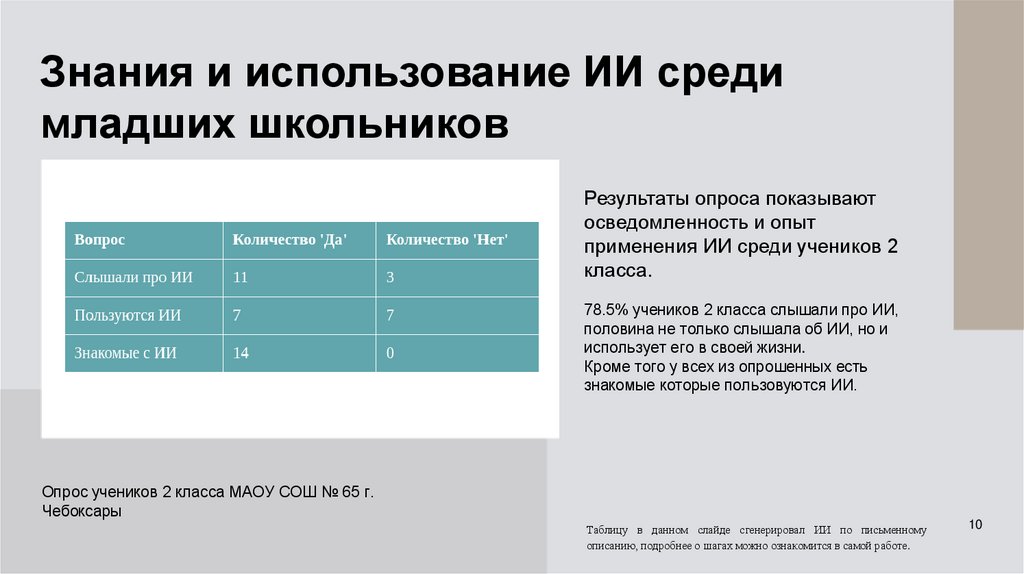 Знания и использование ИИ средимладших школьников