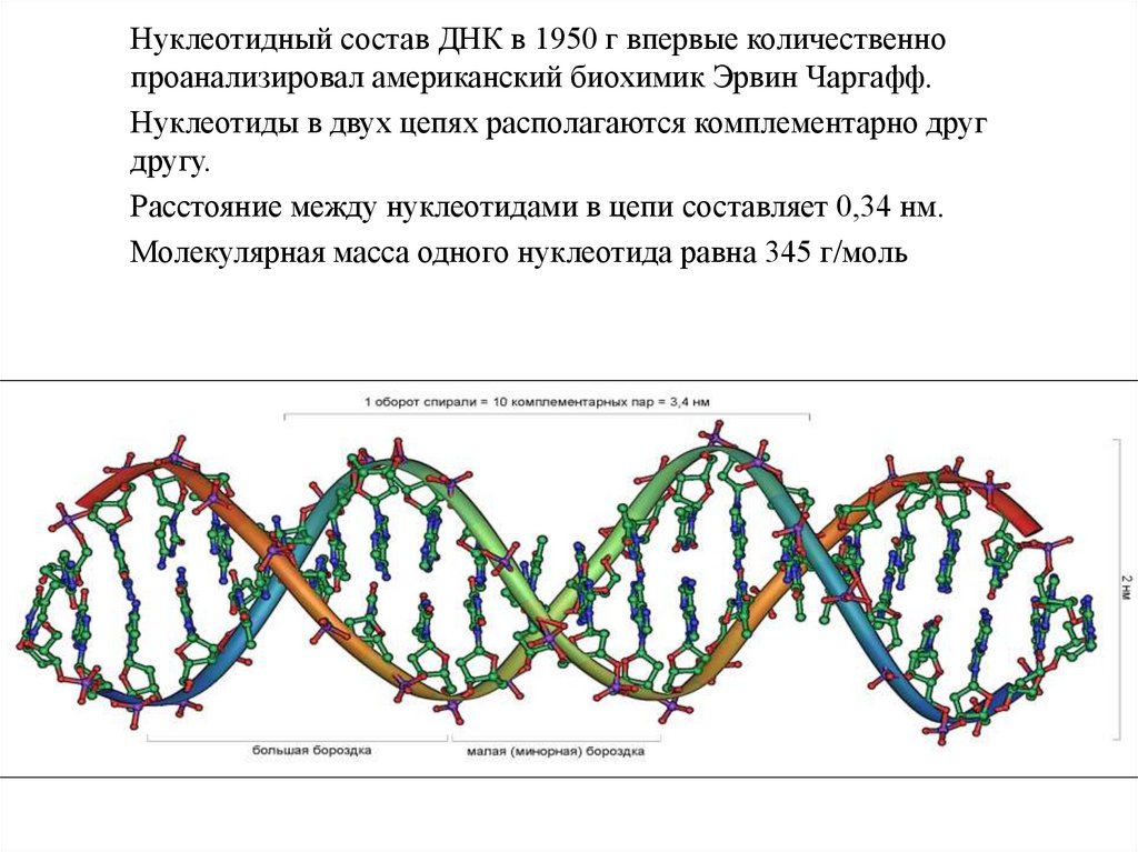 Нуклеотидный состав ДНК в 1950 г впервые количественнопроанализировал американский биохимик Эрвин Чаргафф.