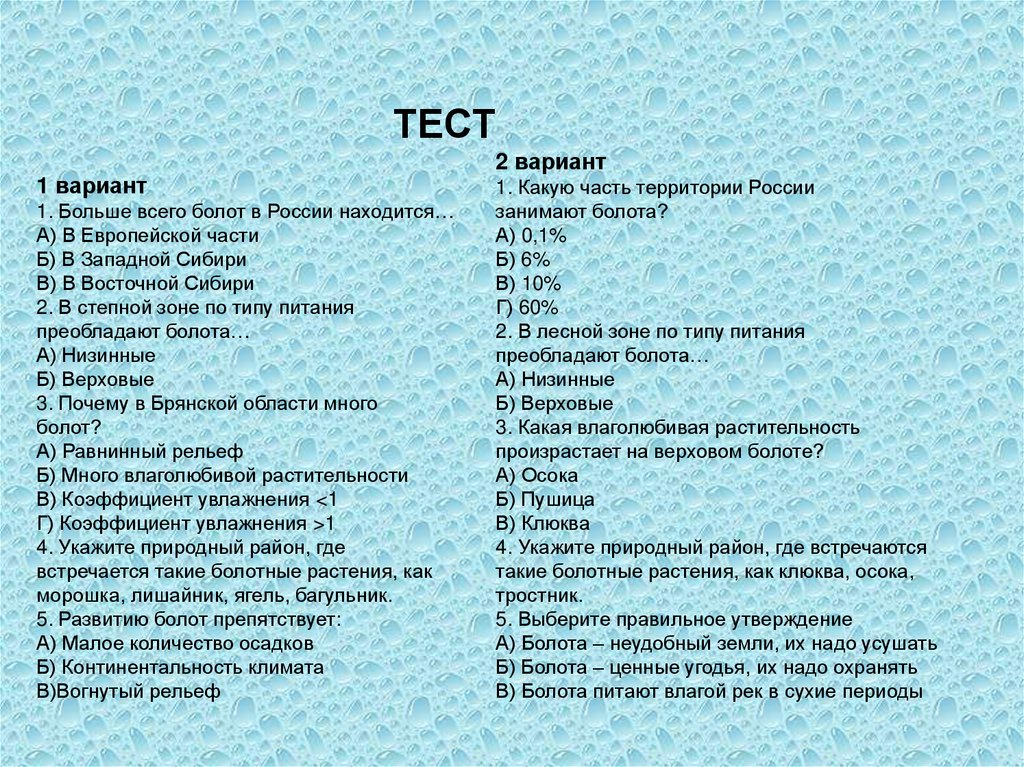 Болота. 8 класс