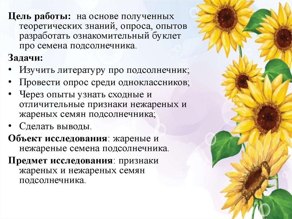Цель работы: на основе полученныхтеоретических знаний, опроса, опытов
