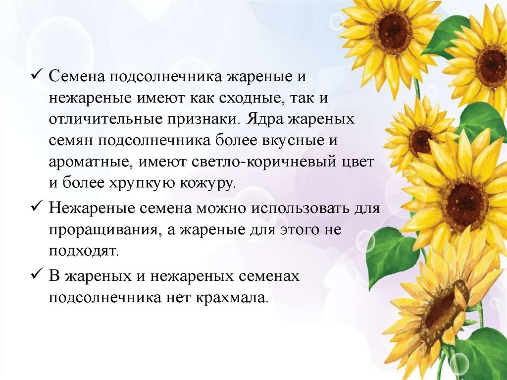 Семена подсолнечника жареные инежареные имеют как сходные, так и
