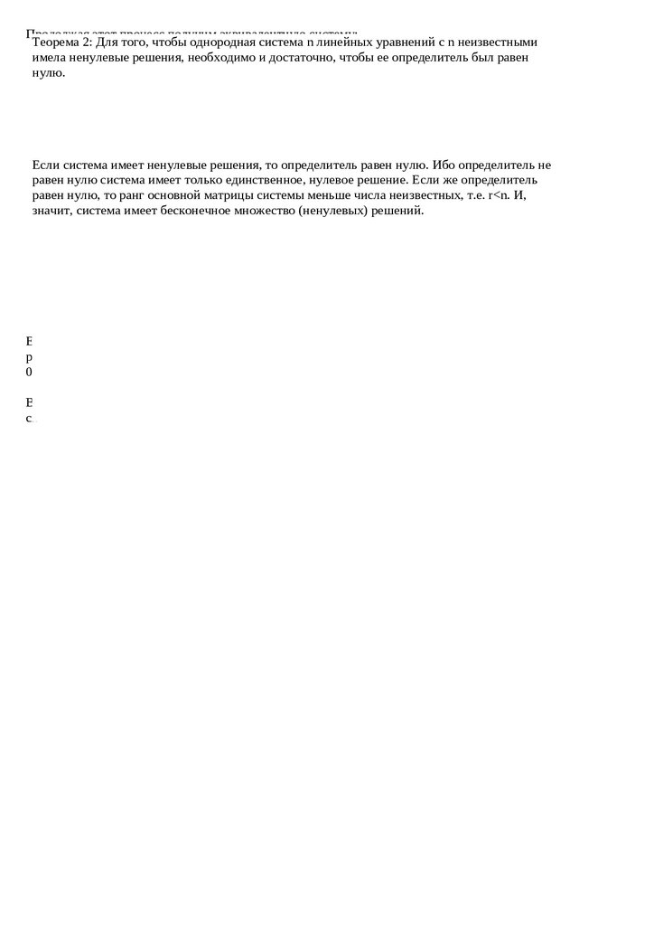 равен нулю, то ранг основной матрицы системы меньше числа неизвестных, т.е. r<n. И,