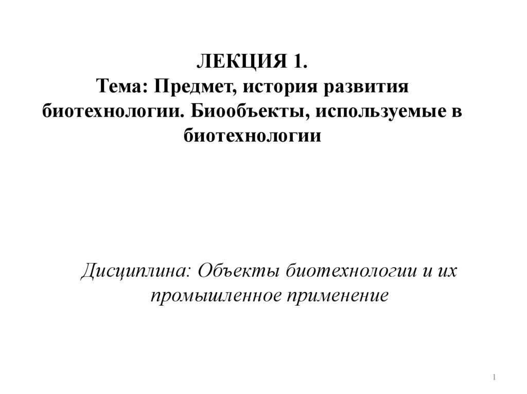 1. ЛЕКЦИЯ 1. Тема: Предмет, история развития биотехнологии. Биообъекты, используемые в биотехнологии