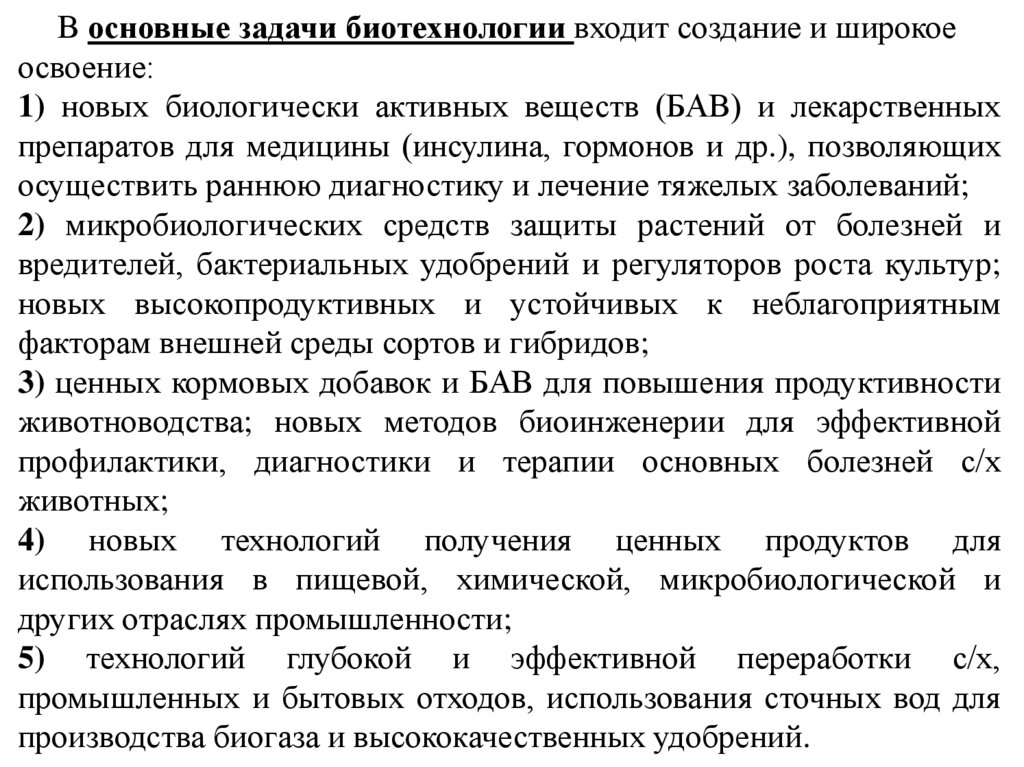В основные задачи биотехнологии входит создание и широкоеосвоение: