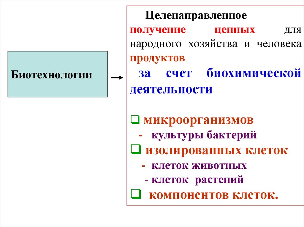 • В качестве таких объектов биотехнологии могут